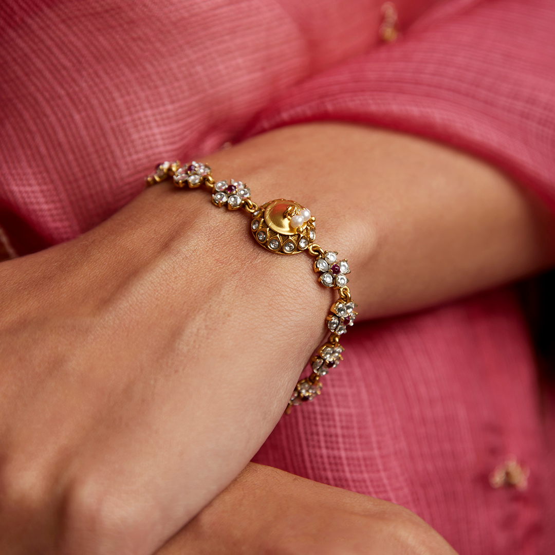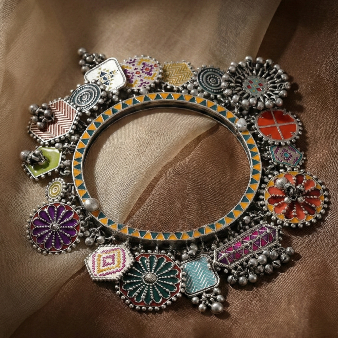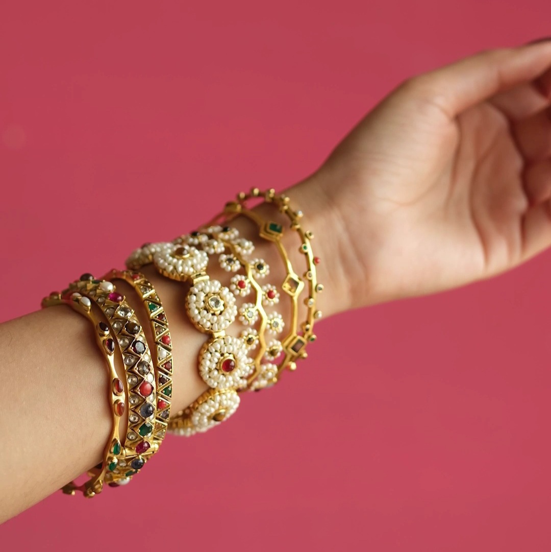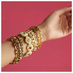 Vivid hues. Intricate clusters. Unmistakable charm. The Ghungroo Collection bracelets and earrings are a statement in motion - indulgent, expressive, unforgettable.