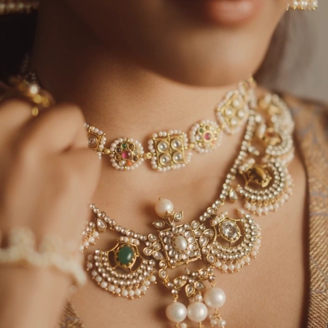 Stunning bridal style shouldn’t break the bank. Discover the Rajnandini Collection: premium pearls, stones, and antique gold finishes designed for your most memorable celebrations.